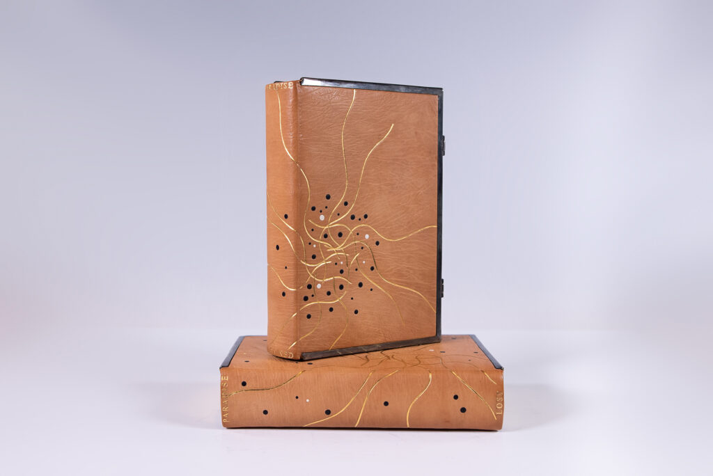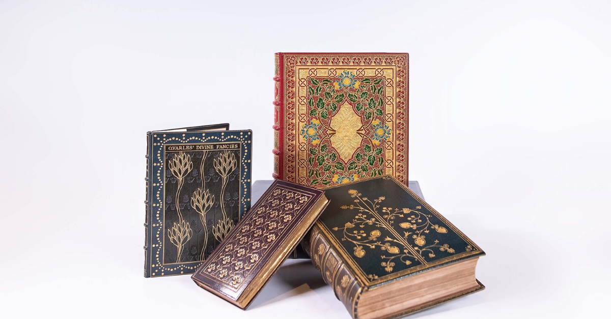 Intricately cut colors of leather, gold tooling and elaborate designs adorn the covers of beautiful books, but have you ever wondered how these books are made? To celebrate the exhibition Bound for Beauty, Washington University Libraries is hosting a book binding demonstration by Noah Smutz, book conservator. Noah will discuss how to bind a book, with models he created to illustrate the steps. He will also demonstrate how to prepare leather for binding and apply gold tooling for decoration. After the demonstration, in-person attendees will be invited to view the exhibition and enjoy the beautiful bindings on display.
