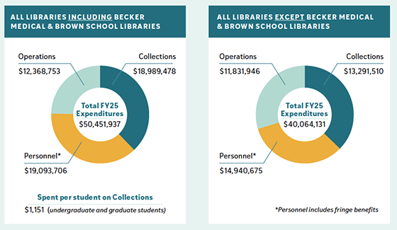 These figures and graphs capture the impact and development of the WashU Libraries’ collections, core services, remote support, outreach efforts, and more for fiscal year (FY) 2025 (July 2024 through June 2025).