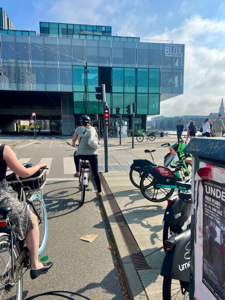 Movement across these cities felt fundamentally different from the car-oriented environments I was used to. Copenhagen, in particular, comes alive on a bike. I rented a bicycle every day and could reach any part of the city within twenty minutes at a relaxed pace. What struck me most were the small details of the cycling infrastructure: Footrests at intersections so riders could wait without dismounting, and traffic lights timed to the average speed of bicycle travel rather than cars. A personal highlight was the Cykelslangen, a raised, ribbon-like bike path weaving calmly through canals, roads, and shopping centers.