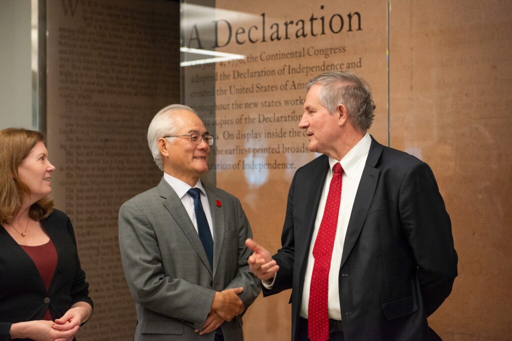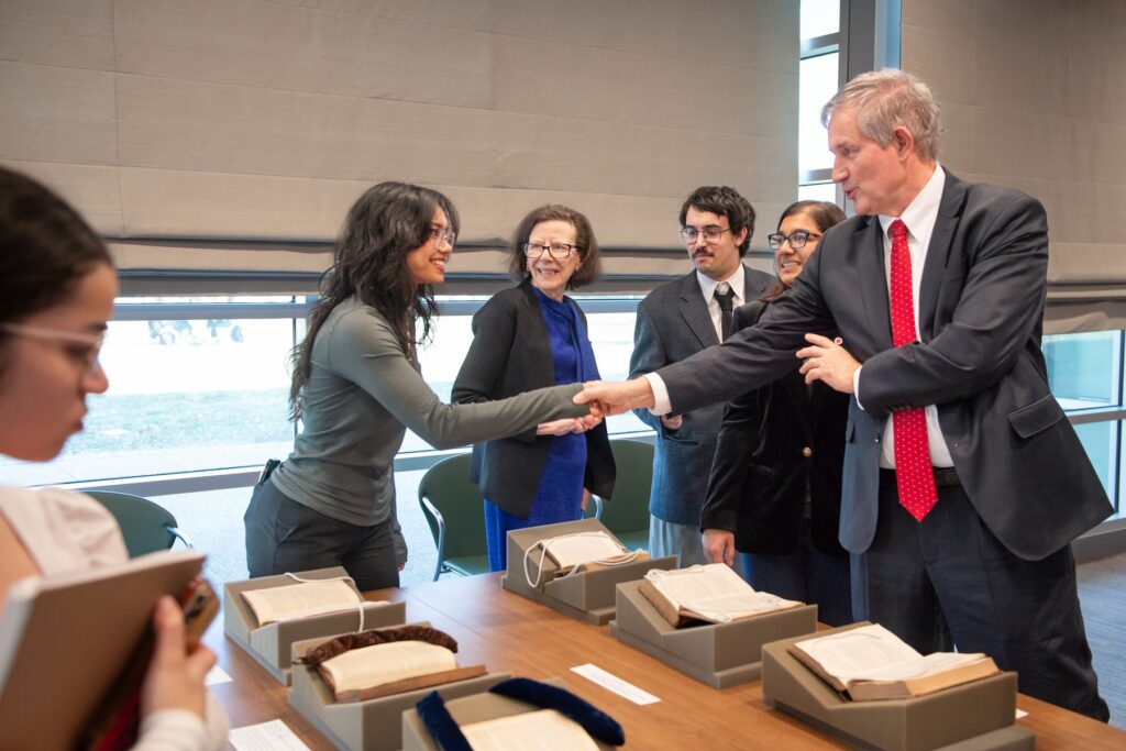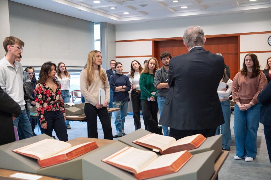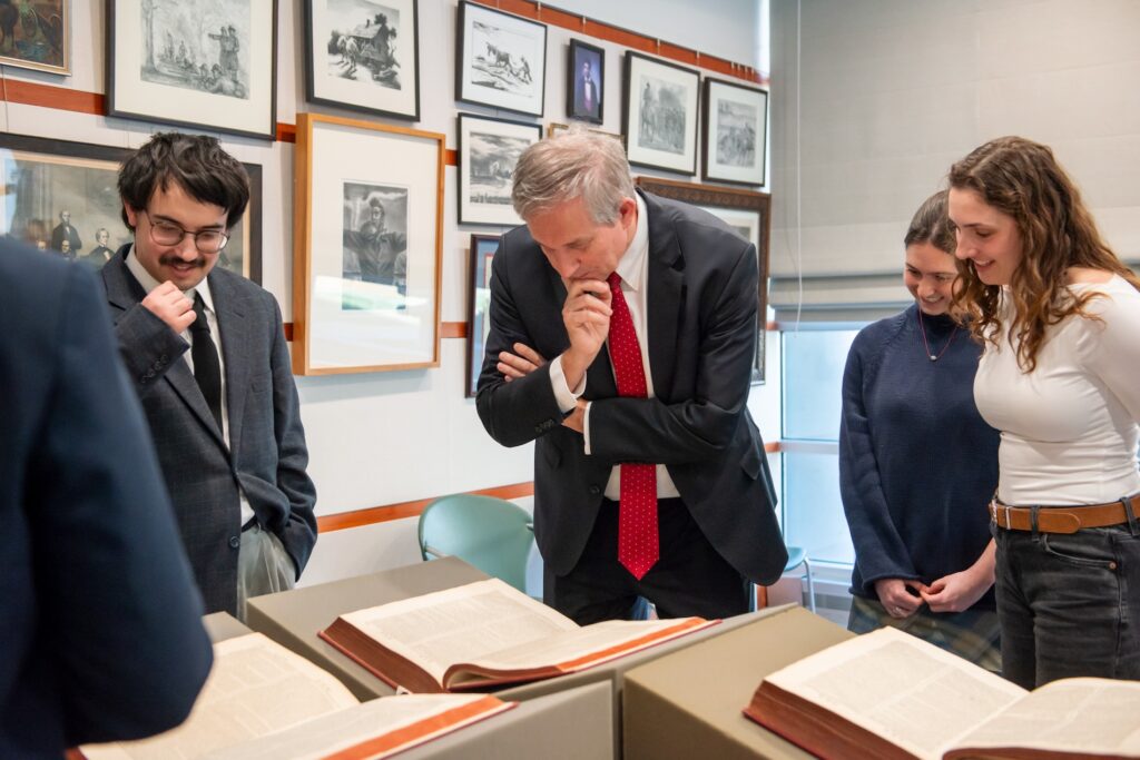 “What stood out most was the remarkable quality of the exchange between our students, Ambassador Bili, and the historical materials themselves. The Special Collections pop-up exhibit and the Declaration of Independence exhibition created a vivid setting in which students could engage directly with the transatlantic intellectual and political traditions that connect 1776 and 1789. It was a powerful moment of dialogue, reflection, and Franco-American academic friendship,” said Cuillé.