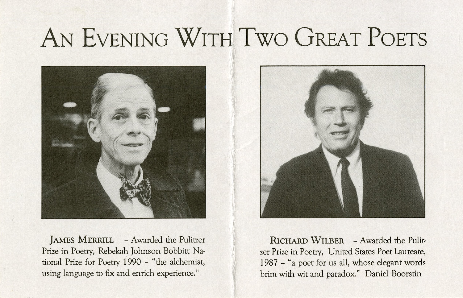 This benefit for the Florida Endowment for the Humanities paired esteemed poets, good friends and neighbors, James Merrill and Richard Wilbur. Merrill and Wilbur were also often involved in the Key West Literary Seminar.