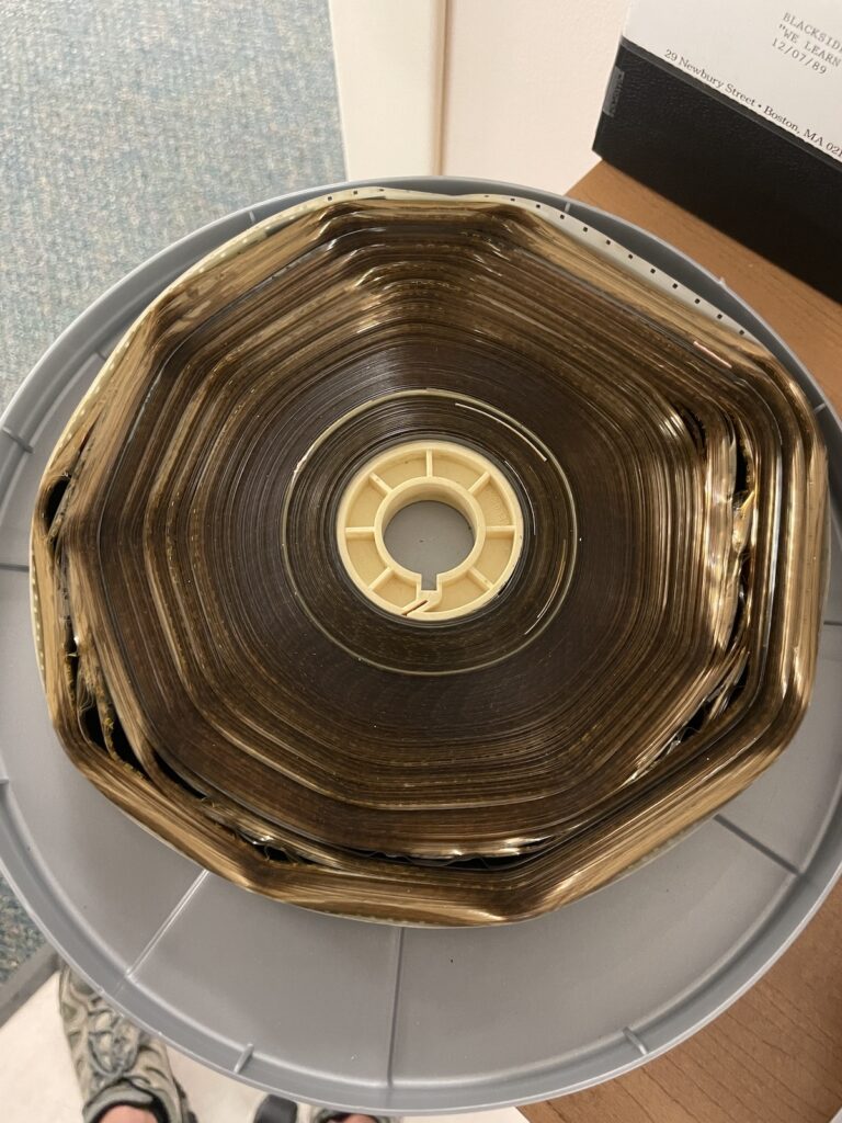 The grant will pay for the digitization of 70 reels of film, 114 reels of quarter-inch audiotape, and 81 audiocassettes. Most of the digitization work will be done by Preserve South, a full-service digitization vendor outside of Atlanta, Georgia. The rare interview with Gary Thomas Rowe is suffering from severe acetic acid decay. Thus, it requires intensive conservation work to make it pliable enough that it can be run through a film scanner, which will happen thanks to the experts at Colorlab.