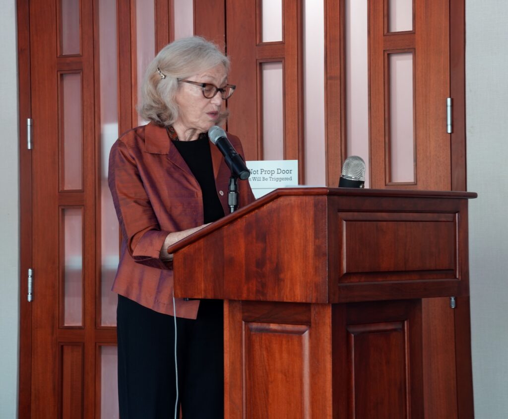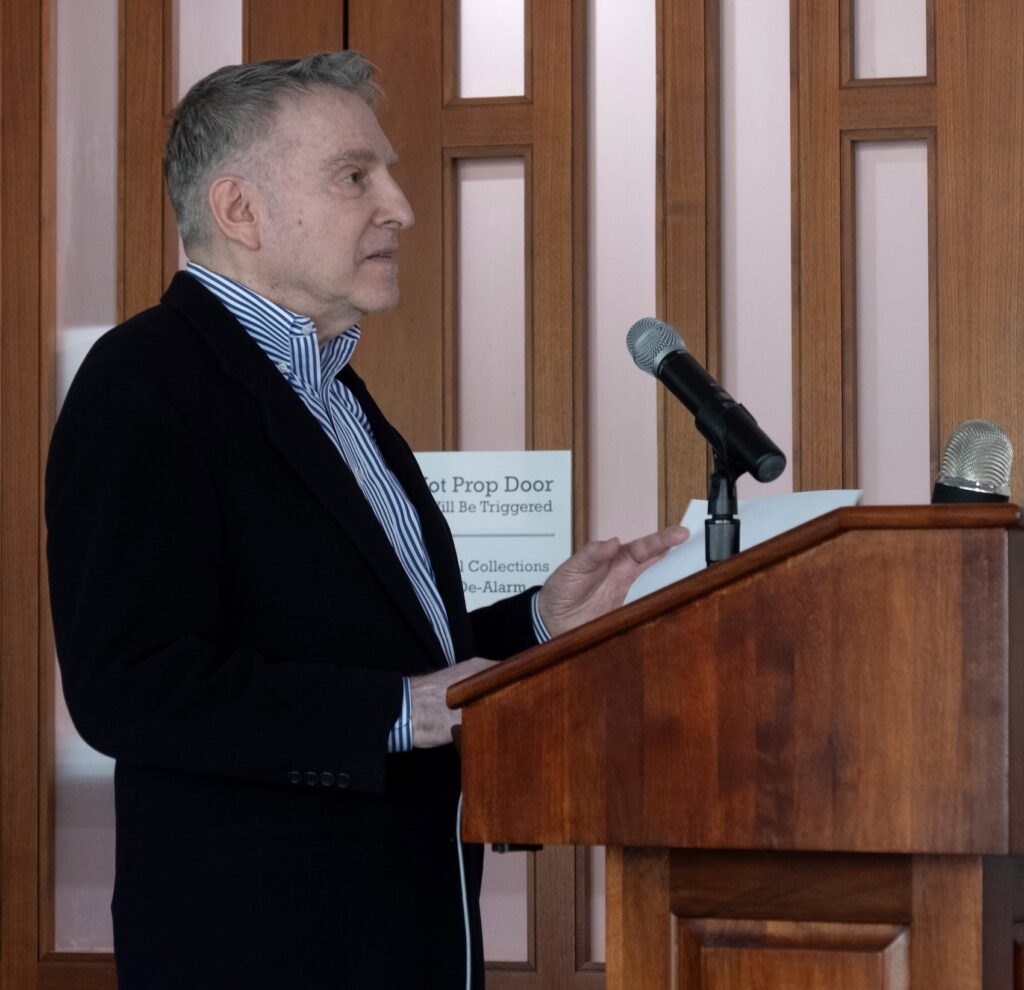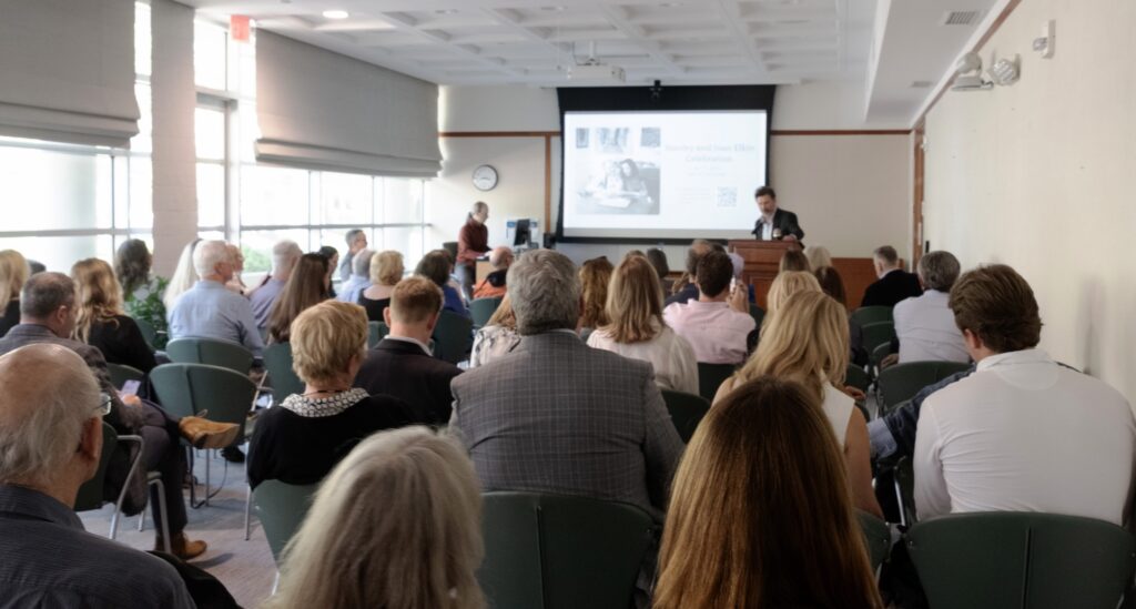 Ghasedi encouraged the audience to visit the current exhibition, Stanley and Joan Elkin’s Artistic Kingdom, on display in Olin Library until July 13, 2025, with a digital version available online as well.
