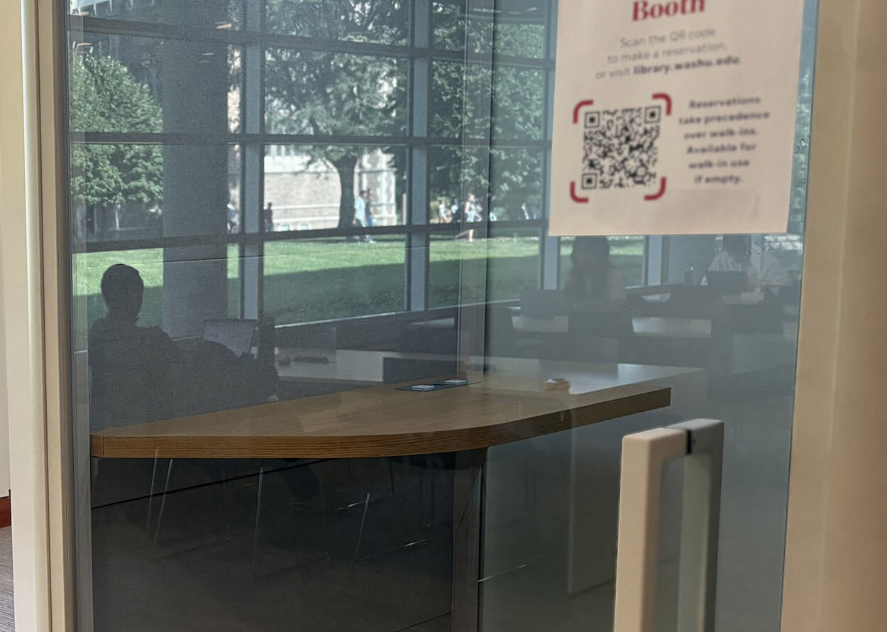 This room has four study carrels and is available on a first-come, first-served basis via a WashU ID faculty card swipe.