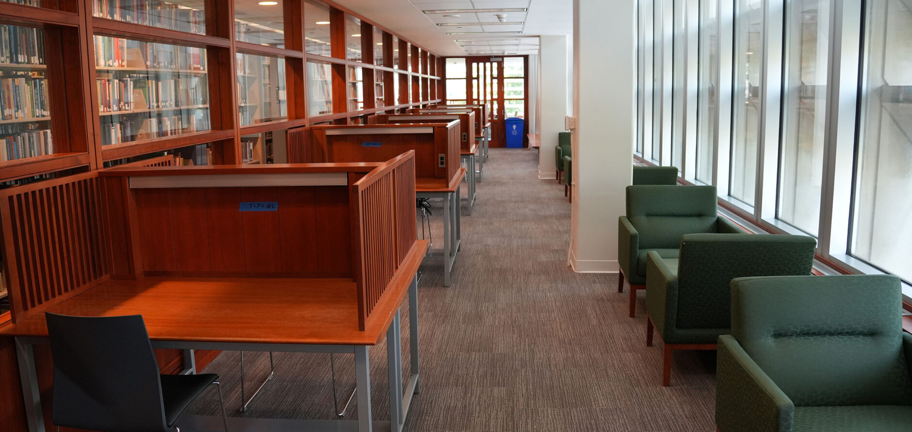 This room is available on a first-come, first-served basis. Twelve study carrels are available.